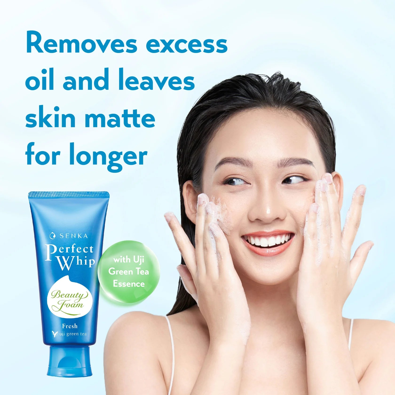 Senka’s Super Micro Beauty Foam offers 2x the benefits for clear, matte, and beautiful bare skin, with the power to both cleanse and care. Infused with Uji Green Tea Essence, it helps achieve longer-lasting matte skin by reducing oil production, while the fine, durable foam thoroughly removes impurities and refines skin texture.
