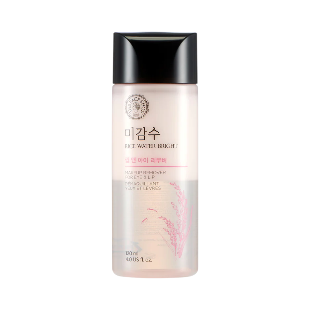 The Face Shop's Rice Water Bright Lip & Eye Makeup Remover is a mild lip & eye makeup remover formulated with Rice Extract, which helps dissolves and removes lip & eye long-wearing makeup without irritation, while brightens up the skin and reduces lip pigmentation.