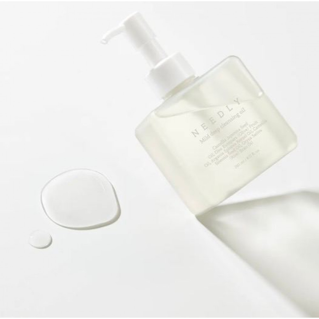 Needly Mild Deep Cleansing Oil is a lightweight, water-like formula that deeply cleanses pores without stripping or clogging the skin. Enhanced with patented fermented Camellia Seed Oil, this cleansing oil offers superior emulsification, hydration, and absorption.